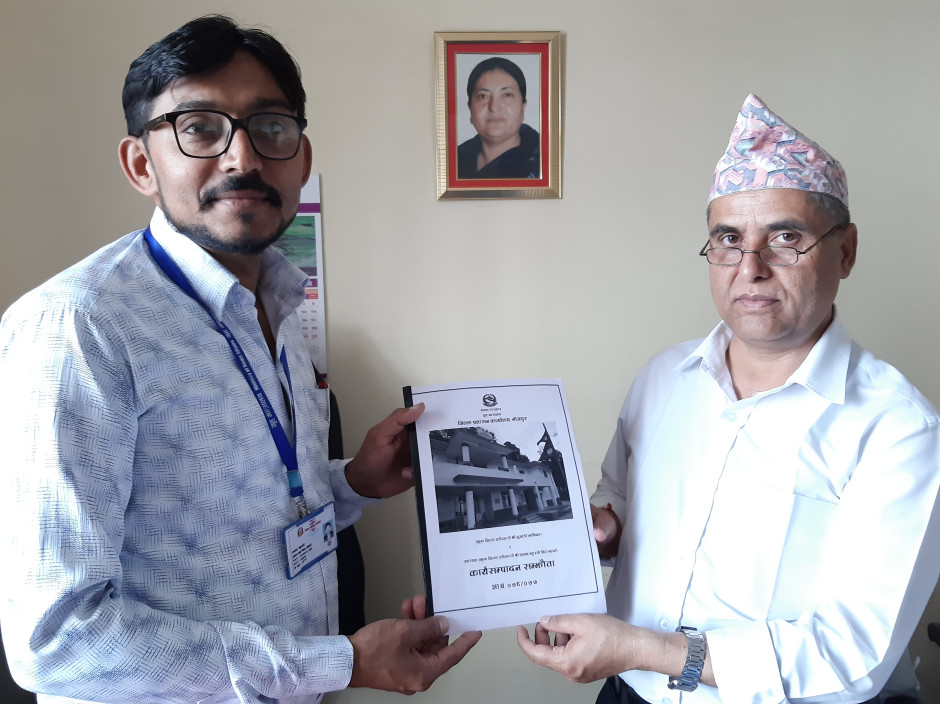 आज मिति 2076/4/31 गतेका दिन यस जिल्लाका प्रमुख जिल्ला अधिकारी र सहायक प्रमुख जिल्ला अधिकारीहरु विच कार्य सम्पादन सम्झौता भएको छ । यसवाट कार्यालयको कार्यसम्पादन अझ प्रभावकारी हुने अपेक्षा गरिएको छ ।