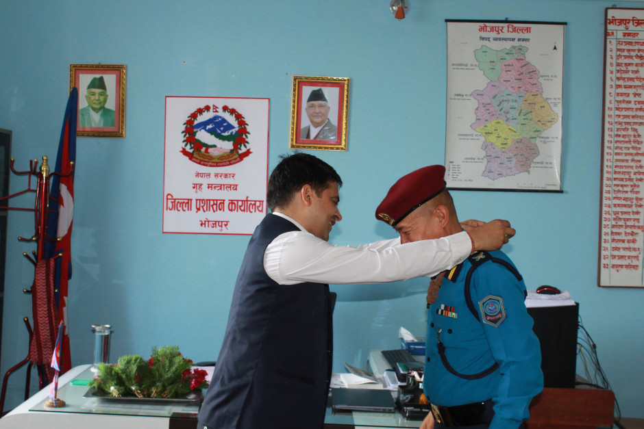 जिल्ला प्रहरी कार्यालय, भोजपुरको कार्यालय प्रमुख रुपमा सरुवा भई आउनु भएका प्रहरी नायब उपरीक्षक श्री राजु लामाज्यूलाई जिल्ला सुरक्षा समितिको तर्फबाट भोजपुरमा हार्दिक स्वागत गर्दै उहाँको सफल कार्यकालको शुभकामना व्यक्त गरियो ।