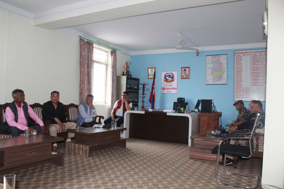 मिति २०८२/०५/२४ गते नि. प्रमुख जिल्ला अधिकारी श्री राजिव पन्थीको अध्यक्षतामा जिल्लास्थित राजनितिक दल, सुरक्षा निकायहरु र नागरिक समाजबीच सर्वदलिय र सर्वपक्षीय बैठकका तस्बीरहरु