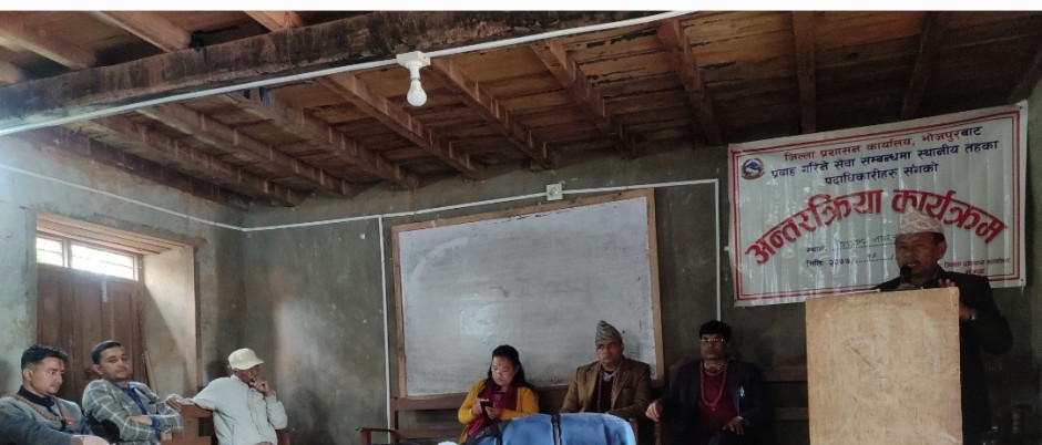 मिति २०७७-१२-०७ गते षडानन्द नगरपालिकाको मेयर श्री विरवल राई ,उपमेयर श्री मेरिका राई साथै वडा अध्यक्ष र वडा सचिव ज्यूहरुसँग जिल्ला प्रशासन कार्यालयको सेवा प्रवाह सम्बन्धी सहजीकरणको लागि अन्तरक्रिया कार्यक्रमका केही झलकहरु