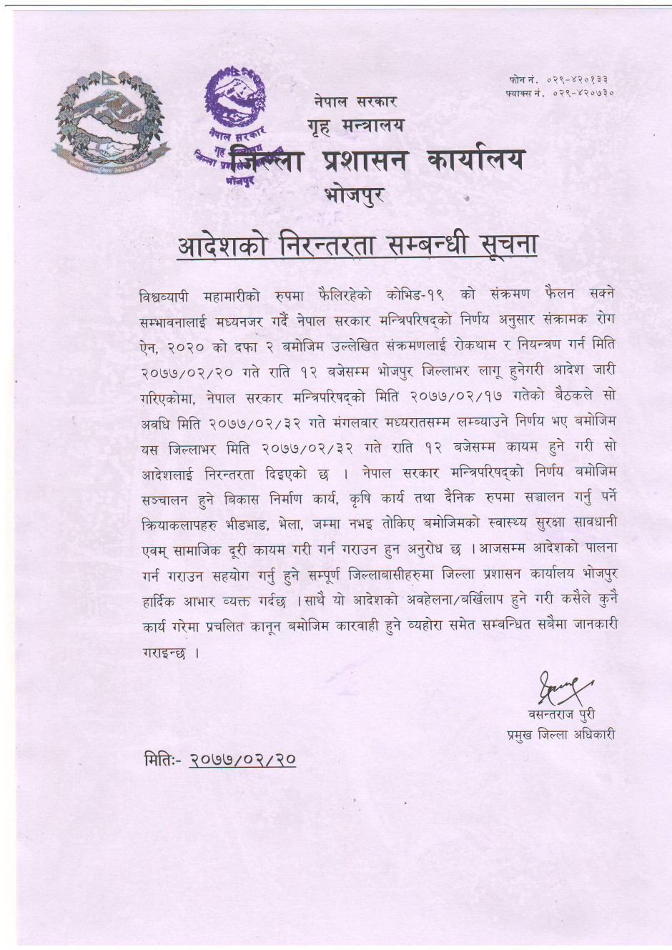 भोजपुर जिल्लाका प्रमुख जिल्ला अधिकारीको प्रेस विज्ञप्ति