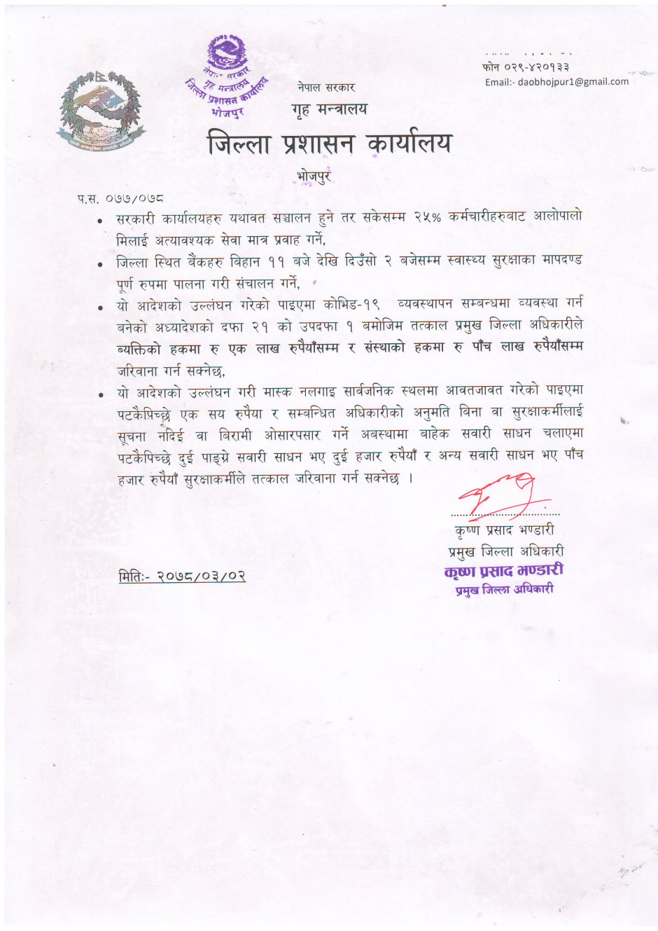 भोजपुर जिल्लाका प्रमुख जिल्ला अधिकारीको प्रेस विज्ञप्ति