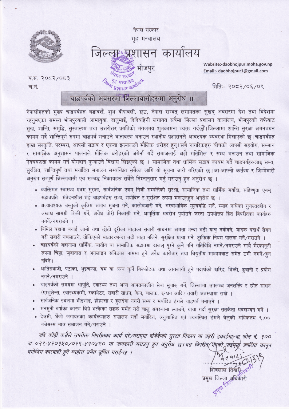 चाडपर्वको अवसरमा जिल्लाबासीहरुमा अनुरोध