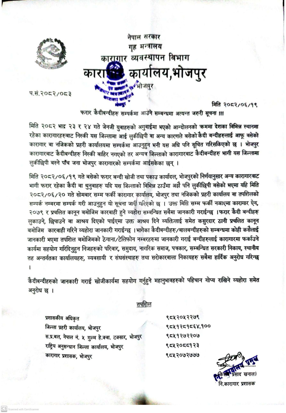 फरार कैदीबन्दीहरु सम्पर्कमा आउने सम्बन्धमा अत्यन्त जरुरी सूचना !!