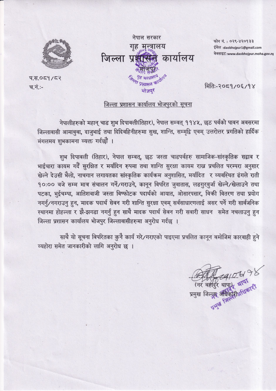 भोजपुर जिल्लाका प्रमुख जिल्ला अधिकारीको प्रेस विज्ञप्ति