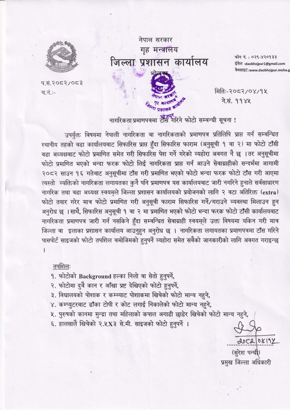 नागरिकता प्रमाणपत्रमा टाँस गरिने फोटो सम्बन्धी सूचना!!