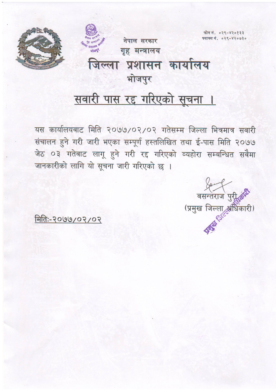 भोजपुर जिल्लाका प्रमुख जिल्ला अधिकारीको प्रेस विज्ञप्ति