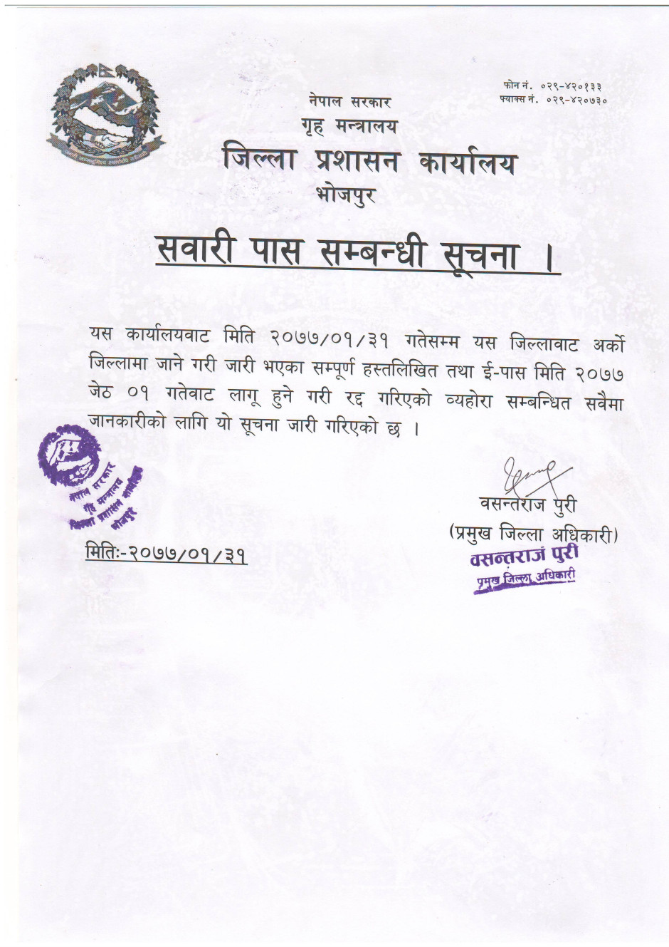 भोजपुर जिल्लाका प्रमुख जिल्ला अधिकारीको प्रेस विज्ञप्ति