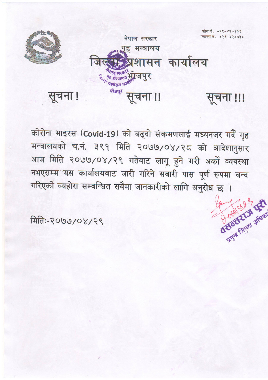 भोजपुर जिल्लाका प्रमुख जिल्ला अधिकारीको प्रेस विज्ञप्ति