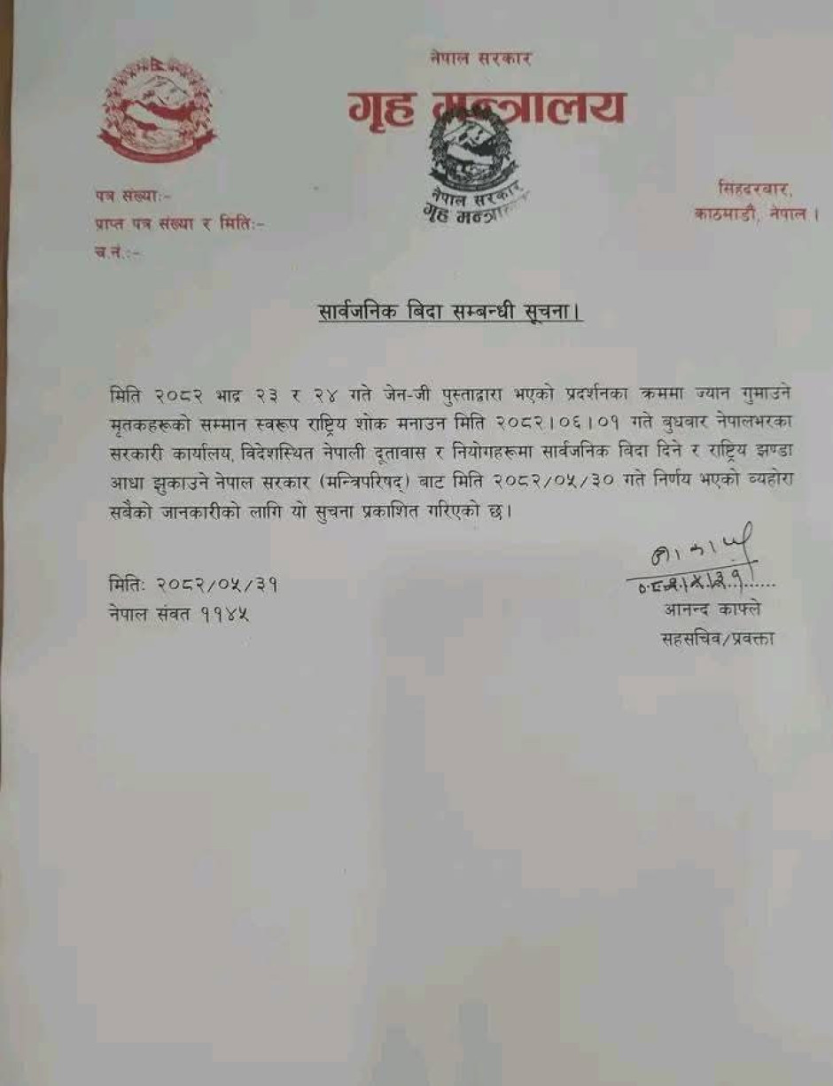 जेन जी आन्दोलनका घाईतेहरुलाई भैपरी खर्च उपलब्ध गराईने सम्बन्धी सूचना