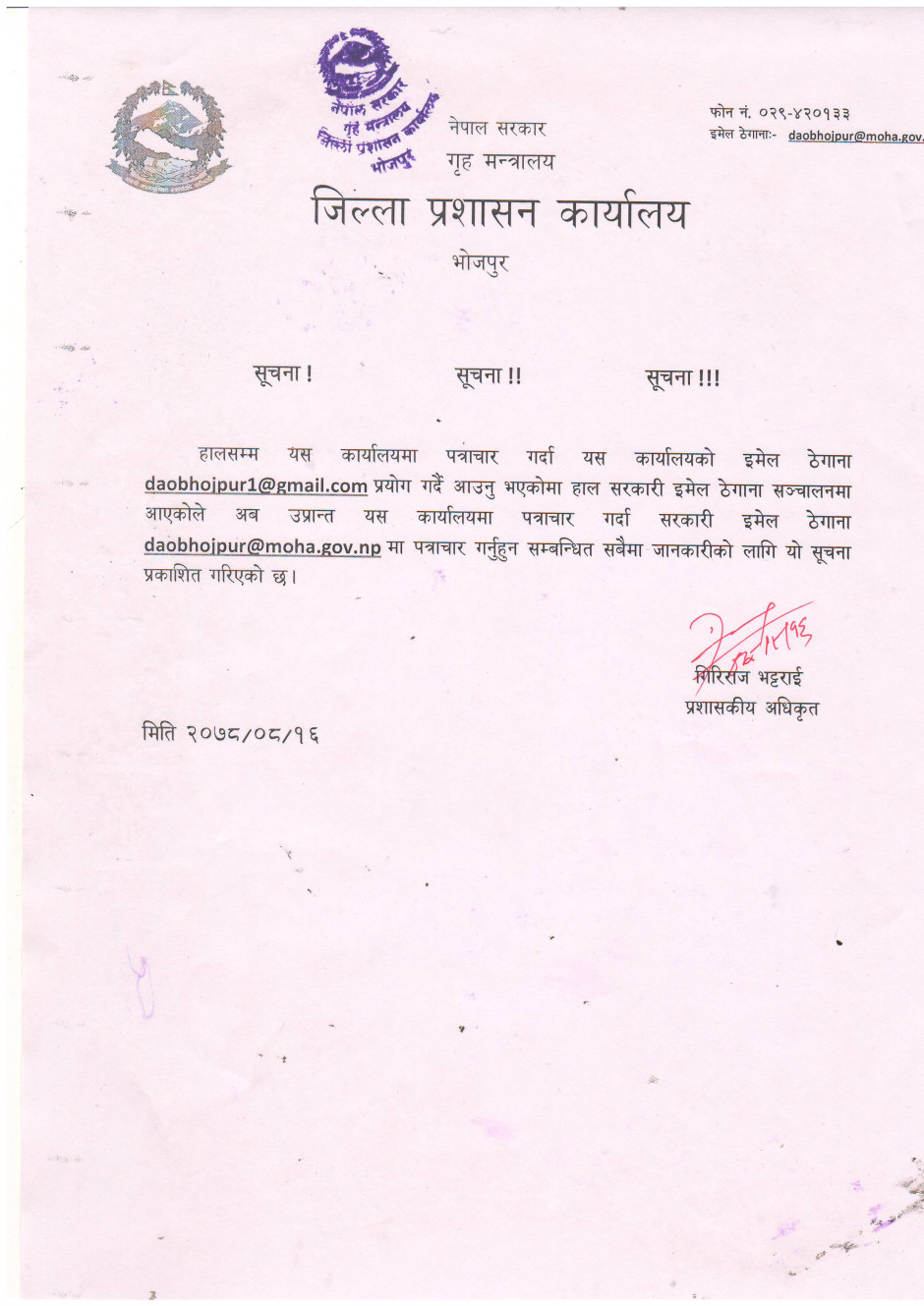 भोजपुर जिल्लाका प्रमुख जिल्ला अधिकारीको प्रेस विज्ञप्ति