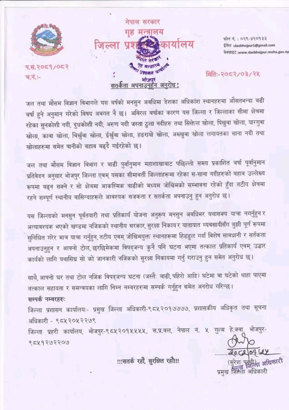 भोजपुर जिल्लाका प्रमुख जिल्ला अधिकारीको प्रेस विज्ञप्ति