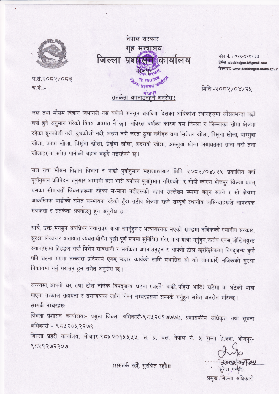 भोजपुर जिल्लाका प्रमुख जिल्ला अधिकारीको प्रेस विज्ञप्ति