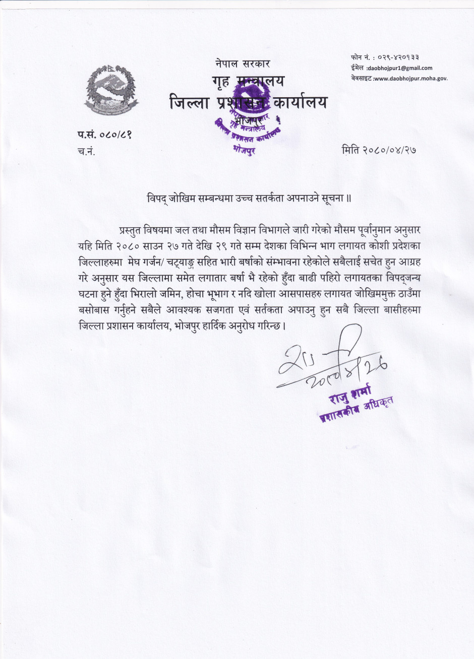 भोजपुर जिल्लाका प्रमुख जिल्ला अधिकारीको प्रेस विज्ञप्ति