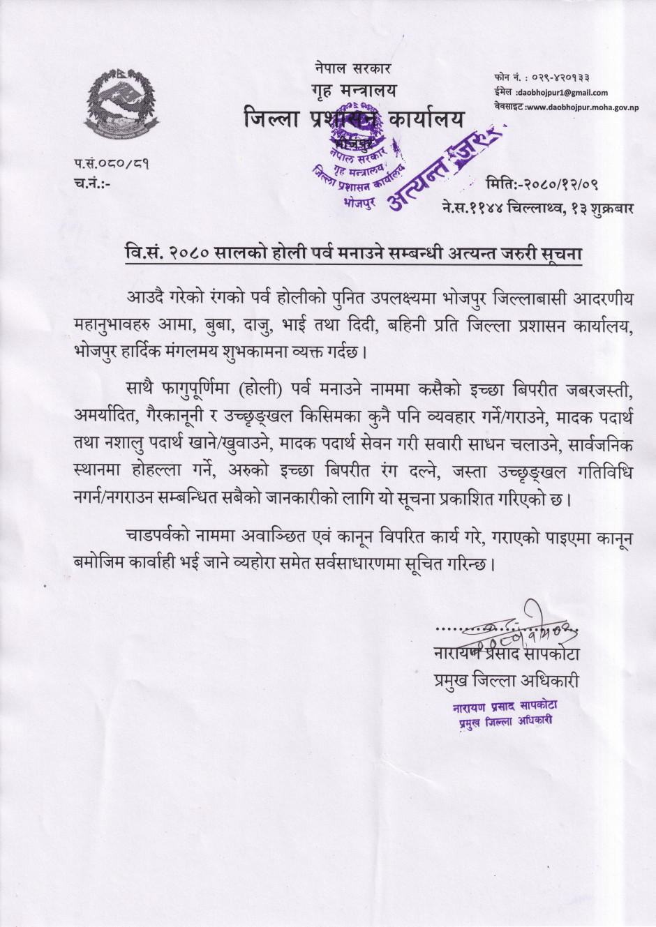 भोजपुर जिल्लाका प्रमुख जिल्ला अधिकारीको प्रेस विज्ञप्ति